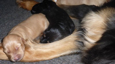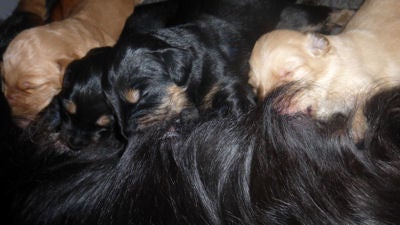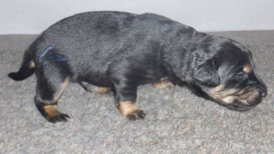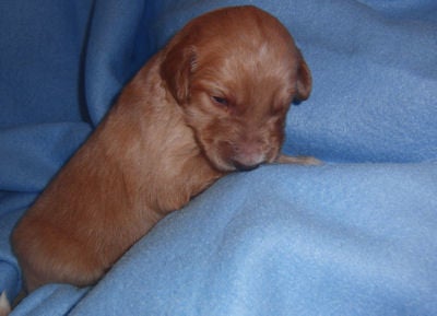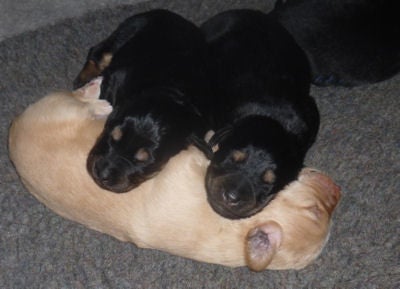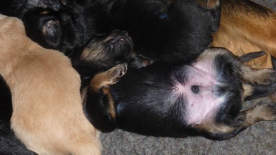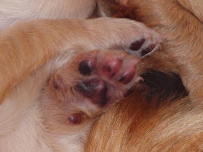 Het pigment komt al goed door, hier duidelijk te zien op het pootje van het blondje.
