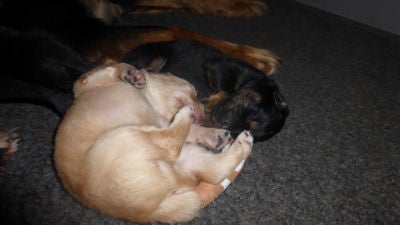 zaterdag 14 maart, de pups 2 weken oud
