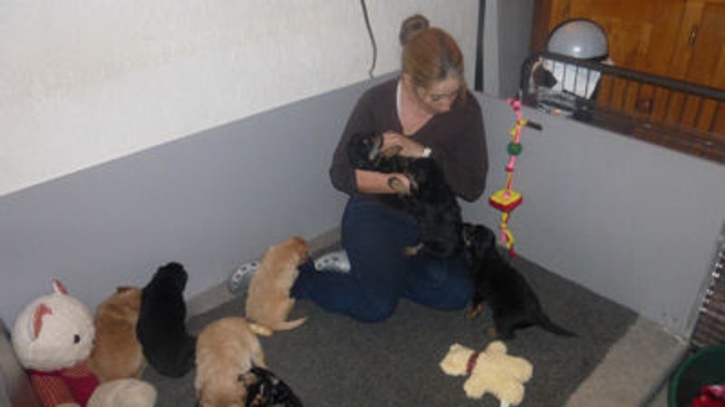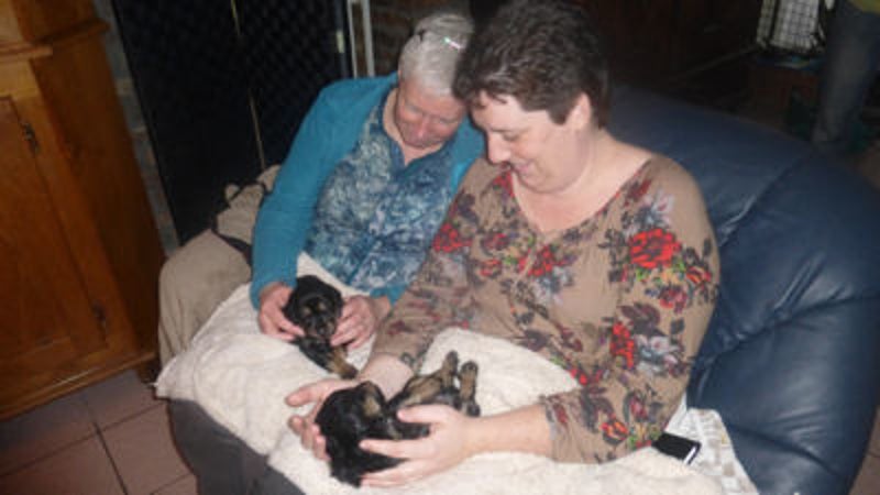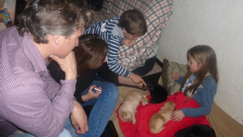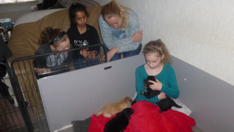 Pupjes komen geen aandacht tekort, vandaag ook bezoek.