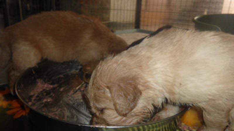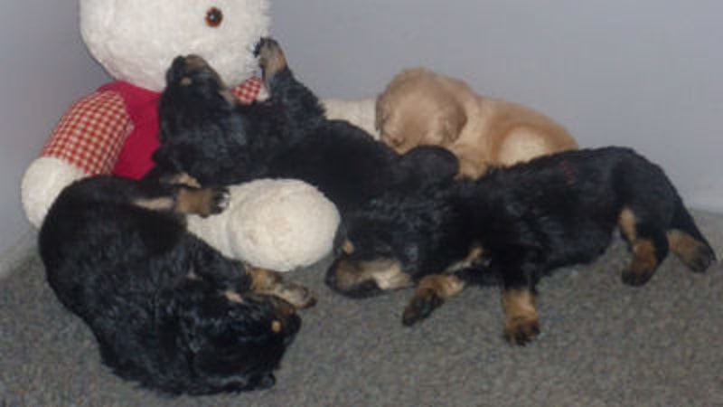 zaterdag 28 maart, de pups 4 weken oud!