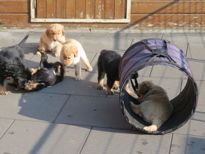 Genieten van het mooie weer en de pupjes.